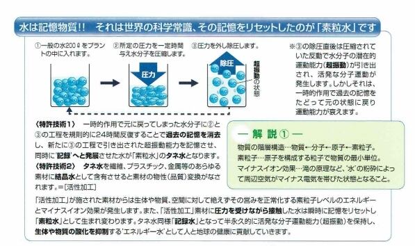 「素粒水」は特許技術によって抗酸化作用(還元力)と自浄能力を最大限に引き出した生きたお水です。